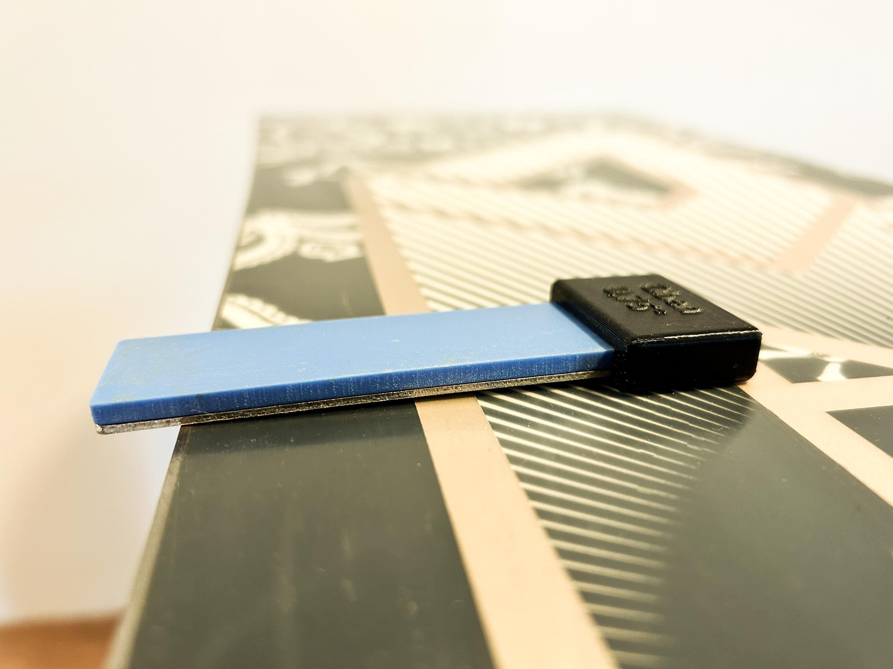 In addition, the ski clamp/board stand enables secure clamping and fixing by means of screws to prevent slipping during edge grinding, waxing and processing. With additional industrial rubber on the upper contact surface for a secure hold during waxing and processing.
